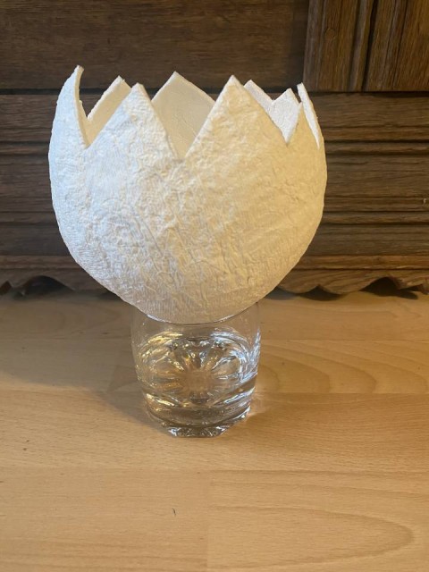 Schritt4: Wenn genügend Schichten aufgetragen sind den Luftballon auf der leeren Schüssel trocknen lassen (ca. 48 Stunden), hierbei regelmäßig wenden, damit er gleichmäßig trocknet.