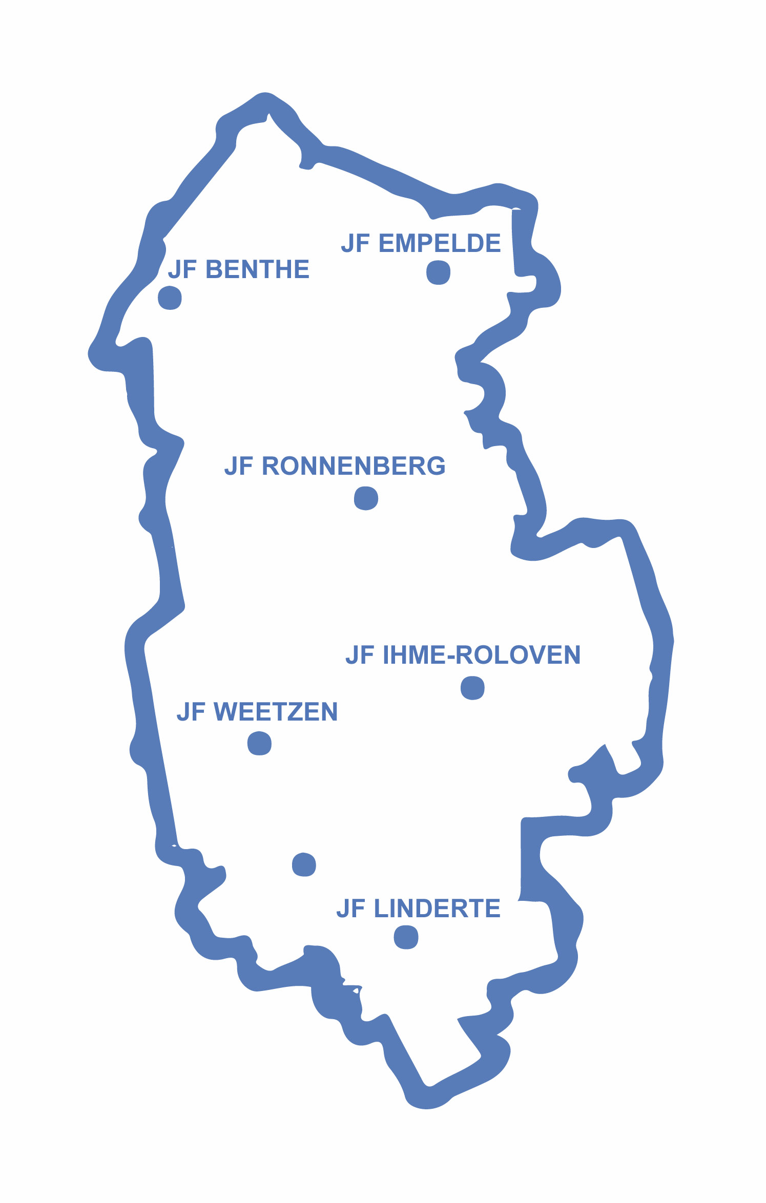 Um zur Jugendfeuerwehr zu kommen, musst du keine weiten Wege gehen.In fast jedem Ort in der Stadt Ronnenberg gibt es eine Jugendfeuerwehr. Diese befinden sich in Benthe, Empelde, Ihme-Roloven, Linderte, Ronnenberg und Weetzen. Einzig in Vorie gibt es zur Zeit keine Jugendfeuerwehr. Natürlich sind  aber auch Kinder und Jugendliche aus Vorie bei uns Herzlich Willkommen. Diese können zum Beispiel Mitglied in Linderte oder in Weetzen werden.